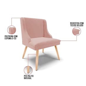 Aconchego é a primeira palavra que vem à mente na hora de escolher a decoração da sala de jantar. Com a cadeira Liz você consegue trazer mais grandiosidade a seu ambiente. Com estrutura ecologicamente correta de madeira de eucalipto e pinus, oferece durabilidade e qualidade ao móvel, seu estofamento é com espuma de densidade D-23, revestido em tecido em Veludo no tom Rose, que oferece muito conforto e resistência ao sentar, com aquela sensação de maciez e bem-estar. Gostou? Então escolha a sua e deixe sua decoração impecável!