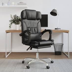 Cadeira vidaXL, cadeira de mesa reclinável com rodas, cadeira reclinável giratória de 360 graus para sala de estar, estilo moderno, couro sintético preto