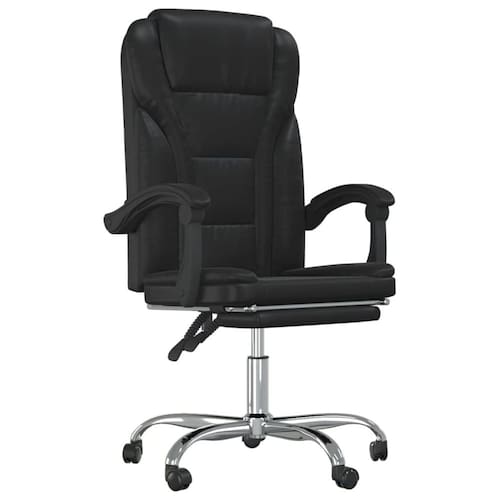 AçoCadeira vidaXL, cadeira de mesa reclinável com rodas, cadeira reclinável giratória de 360 graus para sala de estar, estilo moderno, couro sintético preto
