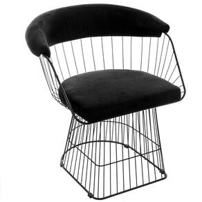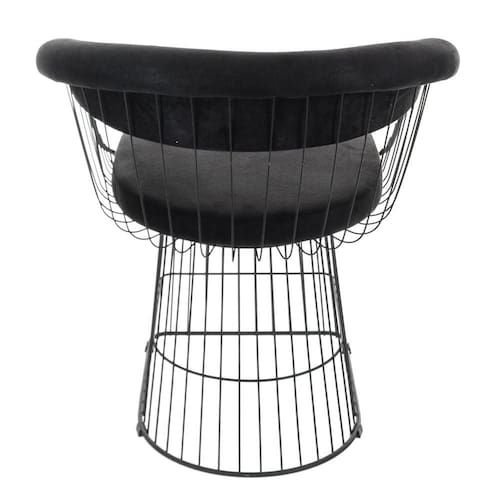 Características: Cor: Preto Material: Aço com Pintura Eletrostática e Almofada de Veludo Estrutura Resistente: Fabricada em aço de alta qualidade, proporcionando durabilidade e estabilidade. Almofada Acolchoada: Revestida em veludo macio, oferecendo conforto extra para longos períodos de uso. Design Moderno: Com linhas elegantes e acabamento sofisticado, esta cadeira adiciona charme ao seu espaço. Fácil de Limpar: Para manter a beleza da sua cadeira, basta utilizar sabão ou detergente neutro e uma esponja macia. Evite o uso de solventes, objetos cortantes ou abrasivos.