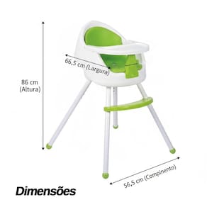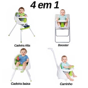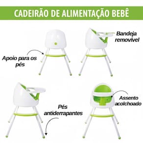 Versatilidade para cada etapa: Modo Refeição (6 meses+): Pode ser utilizada como cadeirão alto tradicional ou assento elevatório (booster) acoplado a uma cadeira comum. Modo Atividades (3 anos+): Transforma-se em uma cadeirinha baixa, ideal para desenhar, brincar e interagir à mesa. Modo Diversão (8 meses+): Base equipada com rodinhas e volante lúdico para entretenimento supervisionado dentro de casa.