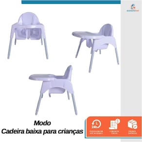 - Duas alturas: cadeira alta e baixa;