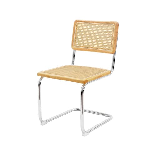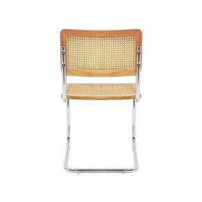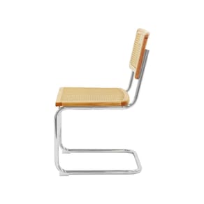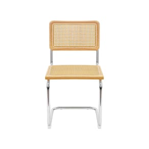 Com estrutura em tubo de aço inox curvado, a Cadeira Cesca é ao mesmo tempo resistente, leve e visualmente fluida. Seu desenho cantilever ou seja, sem as tradicionais pernas traseiras cria uma sensação de flutuação que redefine o espaço com sofisticação. O grande destaque fica por conta do encosto e assento em madeira maciça com palha tramada sintética, produzida com fibra celulósica e reforço em aramida, que garante durabilidade, resistência à umidade e baixa manutenção, sem perder o charme artesanal. A trama segue o padrão clássico com furos de 8 mm, remetendo à tradição do empalhamento manual, conferindo à peça um visual orgânico que se integra com naturalidade a ambientes modernos, retrôs, escandinavos ou industriais. Por que Escolher a Cadeira Cesca Sem Braço? Design Assinado por Marcel Breuer: Um clássico do mobiliário do século XX, admirado em museus e interiores icônicos ao redor do mundo. Combinação de Materiais: Aço inoxidável, madeira maciça e palha sintética união perfeita entre tradição e modernidade. Versatilidade de Uso: Ideal para salas de jantar, escritórios, restaurantes, espaços gourmet ou até como peça de destaque em áreas sociais e de recepção. Estrutura Robusta e Confortável: Apesar de sua leveza visual, a Cesca oferece excelente estabilidade, ergonomia e um toque acolhedor. Fácil de Limpar e Manter: A palha sintética não deforma, é resistente à umidade e permite limpeza com pano levemente umedecido.