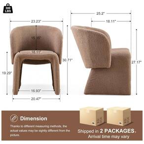 Marca: Homedot Fabricante: Homedot Modelo: Barrel Dining Chairs 2 PCS Tipo de produto: Conjunto de cadeiras de jantar estofadas tipo barrel Quantidade de cadeiras: 2 unidades Uso recomendado: Jantar, leitura, trabalho, apoio em sala, quarto, sala de estudo, sala de maquiagem Ambiente de uso: Interno Cor: Marrom Estilo: Mid-century moderno / contemporâneo Formato do assento: Assento em formato U Formato do encosto: Encosto arredondado médio com costas sólidas Design do braço: Com apoios de braço integrados Material do revestimento: Veludo teddy em poliéster e blend de poliéster Material do enchimento: Espuma de alta densidade Estrutura dos pés: Metal Tipo de pé: Pernas curvas com ponteiras antiderrapantes Padrão/estampa: Liso Profundidade total: 46 cm Largura total: 46 cm Altura total: 78 cm Profundidade do assento: 46 cm Capacidade de assentos por cadeira: 1 pessoa Peso máximo recomendado: 136 kg Peso do produto (conjunto aproximado): 20,4 kg Faixa etária indicada: Adulto Dobrável: Não Reclinável: Não Quantidade de posições de reclino: 1 Uso indoor/outdoor: Indoor Instruções de limpeza: Limpar com pano úmido e remover manchas imediatamente Componentes incluídos: 2 cadeiras, ferragens de montagem, manual de instruções Instruções de montagem: Montagem necessária, com instruções e acessórios incluídos Conteúdo da embalagem: Kit com 2 cadeiras de jantar estofadas tipo barrel Manual do usuário: Inglês Marca: Não Informado