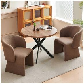 O conjunto Homedot reúne duas cadeiras de jantar tipo barrel, totalmente estofadas em veludo teddy marrom, com encosto arredondado médio e braços integrados para apoio lateral durante refeições e momentos de uso prolongado. O assento e o encosto utilizam espuma de alta densidade, combinando conforto e suporte em ambientes como sala de jantar, copa, sala de estar, quarto ou área de maquiagem. ? A estrutura de cada cadeira é composta por pés metálicos com desenho curvado e ponteiras antiderrapantes, desenvolvidos para estabilidade no uso diário. Com dimensões aproximadas de 46 cm de profundidade, 46 cm de largura e 78 cm de altura total, o conjunto se adapta bem a mesas de jantar compactas e espaços multifuncionais. ? Ficha Técnica: