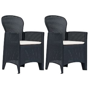- Número de itens: 2- - Cor: antracite- - Material: plástico sintético - - Interno/externo: somente ao ar livre - Capa incluída: Não- - Sala: jardim e terraço- - Dimensões: 22,4 x 23,2 x 35,0 pol. (L x C x A) - - Altura da superfície: 1,2 pol.- - Altura da perna: 17,1 pol.- - Peso: 11,02 libras- - Profundidade do assento: 19,7 pol.- - Balanços: Não- - Marca: vidaXL- - A entrega contém: 2 cadeiras, 2 almofadas de assento- - Montagem necessária: Sim- - SKU: 45599- - EAN: 8719883552576-