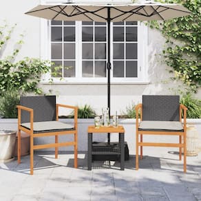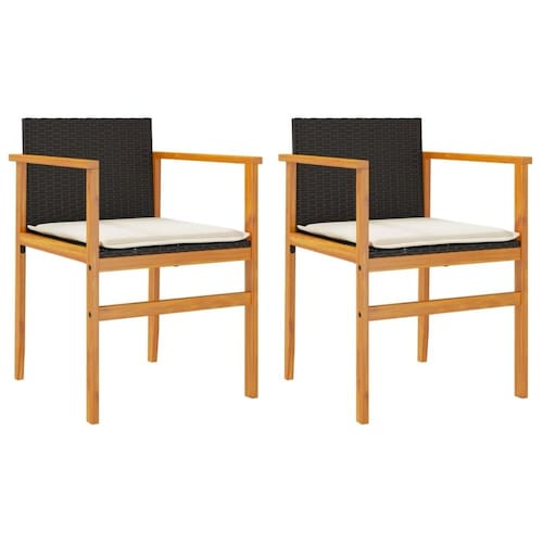 Este conjunto de cadeiras de jardim modernas adiciona um novo toque ao descanso ao ar livre com seu design elegante de poliéster preto combinado com madeira maciça de acácia. Ótimas para relaxar em uma varanda ensolarada ou ter alguns amigos próximos em seu jardim, essas cadeiras combinam estilo e conforto para melhorar a aparência de sua área externa