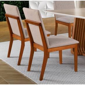 Cadeiras Madeira Maciça Estofada - Girassol - Harmonia Salas Essa elegante cadeira de jantar combina sofisticação e conforto em um design atemporal. Fabricada em madeira maciça de alta qualidade, possui estrutura robusta e acabamento refinado em tom natural, valorizando a beleza da madeira. O encosto e assento estofados com espuma D-23 garantem o conforto e aconchego para você, seus amigos e familia trazendo uma experiência agradável durante as refeições. Ideal para compor salas de jantar sofisticadas, áreas gourmet ou espaços de convivência, essa cadeira une durabilidade, ergonomia e um design versátil que harmoniza com diversos estilos de decoração. Devido à fabricação manual, o que compete ao produto um acabamento impecável, o tempo solicitado é um pouco maior do que o convencional por isso pedimos um prazo um pouco maior do que a maioria dos produtos. No entanto, garantimos que o resultado vale a pena. Faz parte do anúncio: 2 Cadeiras Madeira Maciça Estofada - Girassol - Harmonia Salas Obs.: Objetos de decoração não acompanham o produto. Particularidades da Cadeira: Características: - Madeira Maciça de Eucalipto seca e tratada em estufa; - Madeira imunizada; - Espuma D-23; - Estrutura reforçada; - Ecologicamente correta; - Peso suportado recomendado 150kg. Dimensões: Altura:94 centímetros Altura do assento: 47 centímetros Largura: 47 centímetros Profundidade: 47 centímetros Informações Importantes: - Produtos podem apresentar diferenças de tonalidades entre a foto na tela e o produto real, devido a calibração de cor de tela. - Limpar com flanela ou pano macio. Não utilizar álcool. Não utilizar produtos abrasivos ou corrosivos - Nós prezamos pela qualidade da entrega em primeiro lugar, trabalhamos com transportadoras altamente selecionadas e os melhores materiais de embalagem. - As cadeiras vão 100% montadas nas caixas e embaladas. Não necessita da montagem de um profissional. - Objetos de decoração não incluso. - Certifique-se de que o produto caiba em elevadores e vãos de escadas, não fazemos içamentos ou desmontagens de produtos. Quaisquer despesas deste tipo ficam a cargo do cliente - Garantia de 3 meses contra defeitos de fabricação. Marca: Harmonia Salas