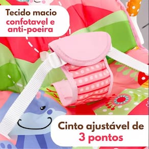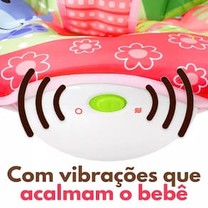 A Cadeira Baby com móbile estimula o desenvolvimento da visão, audição e tato do bebê. Vem com brinquedinhos tipo móbile que tocam músicas de ninar e cinto de segurança regulável. Ela também emite vibrações que acalmam o bebê e tornam a hora do cochilo mais tranquila.
