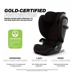 Cadeirinha booster alta costas Cybex Solution G2 Moon Black oferece estrutura dobrável para armazenamento compacto, instalação rígida via Latch e proteção lateral linear com sistema L.S.P. Plus integrado à casca absorvedora de energia e encosto de cabeça reclinável. Projetada para uso em veículos com orientação forward-facing, suporta crianças em fase de transição de assentos com arnês para booster, com peso máximo de 54 kg e ajuste de altura em 3 posições. Ideal para viagens, ocupa até 1/3 menos espaço quando dobrada, compatível com bagageiro de carro ou compartimento superior de aeronave.