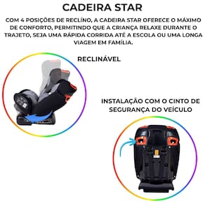 Cadeirinha para carro bebê passear star grup o+ i ii e iii 0 à 36 kg preto com cinza A cadeira star da passear é a escolha perfeita para pais que não abrem mão da proteção e comodidade das suas crianças durante os deslocamentos. Projetada para acompanhar o crescimento da criança, a cadeira star é um dispositivo de retenção para o grupo 0+, 1, 2 e 3, suportando pesos de 0 até 36kg, garantindo proteção desde os primeiros dias até a infância. Com 4 posições de reclíno, a cadeira star oferece o máximo de conforto, permitindo que a criança relaxe durante o trajeto, seja uma rápida corrida até a escola ou uma longa viagem em família. O tecido removível e lavável facilita a limpeza e manutenção da cadeira, garantindo que ela esteja sempre pronta para uso, mesmo após as aventuras mais animadas. Principais características: - dispositivo de retenção para crianças do grupo 0+, 1, 2 e 3 de 0 até 36 kg - cinto de segurança de 5 pontos - ajuste de altura do cinto de segurança do drc - cadeira com sistema de instalação com cinto de segurança do carro - possui 4 posições de reclino - tecido removível e lavável - base robusta - inmetro: 010935/2022 - certificado nbr 14400 - de 12 meses direto com o fabricante Marca: Não Informado