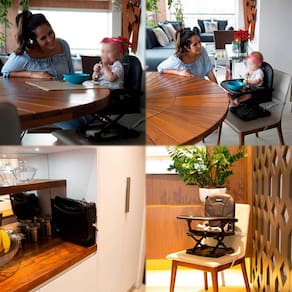 Portátil e ultracompacta, pode ser levada em viagens ou passeios e acoplada em cadeiras comuns de adulto. Regulagem de altura e capa protetora para maior conforto.