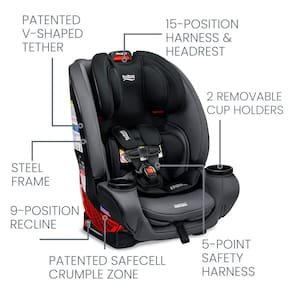 A cadeira Britax One4Life oferece conforto e segurança de 2,3 a 54 kg e até 160 cm de altura. Com 4 modos: cadeira infantil reversível, cadeira para crianças, cadeira com cinto de 5 pontos e booster.