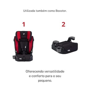 Características: Grupos de Uso: Indicada para crianças de 9 a 36 kg (Grupo 1: 9-18 kg, Grupo 2: 15-25 kg, Grupo 3: 25-36 kg). Instalação: Pode ser instalada com cinto de segurança do veículo ou sistema Isofix, dependendo da fase de uso. Proteção Lateral: Sistema integrado que oferece segurança extra em impactos laterais. Apoio de Cabeça Ajustável: Várias posições para acompanhar o crescimento da criança. Encosto Reclinável: Múltiplas posições para maior conforto em viagens longas. Revestimento: Tecido acolchoado, respirável e removível, fácil de limpar e confortável. Base Estável: Design com base ampla que garante mais segurança e estabilidade durante o transporte. Certificação de Segurança: Cumpre as normas europeias ECE R44/04. Versatilidade e conforto: Utilizada também como Booster.
