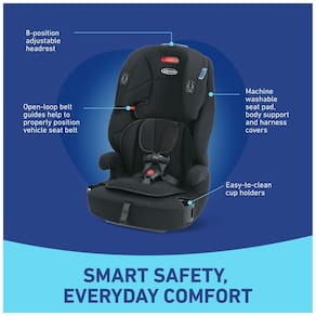 A Cadeirinha de Carro Graco Tranzitions 3 em 1 foi projetada para acompanhar o crescimento da criança e te acompanhar em todas as jornadas, do carro à carona e além. Esta cadeirinha leve transita perfeitamente de booster com arnês de 13 a 25 kg, a booster de encosto alto de 18,1 a 45,3 kg, e sem encosto de 18,1 a 45,3 kg. Possui o Sistema de Arnês Simply Safe Adjust, que ajusta o arnês e o apoio de cabeça em 9 posições de altura, sem a necessidade de rosquear novamente. Conta com dois porta-copos giratórios para manter a criança feliz, capa de assento lavável na máquina e protetores de arnês. Para continuar atendendo aos padrões da indústria, aumentamos o peso mínimo de 13,6 para 18,1 kg. O booster 3 em 1 ajuda a proteger seu filho, desde a infância até a juventude, crescendo junto com a criança de booster voltado para frente de 13 a 25 kg a booster com encosto alto de 18,1 a 45,3 kg e sem encosto de 18,1 a 45,3 kg. O Sistema de Arnês Simply Safe Adjust sem a necessidade de rosquear permite ajustar o apoio de cabeça e o arnês juntos em um único movimento. O assento portátil e leve é ideal para pais ocupados e ativos. O apoio de cabeça ajustável com uma mão em 9 posições cresce com seu filho.
