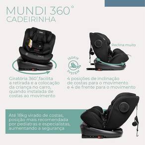 Explore um mundo de conforto e segurança com a Cadeirinha de Carro Mundi Isofix 360 da Infanti, uma solução completa que acompanha o crescimento do seu filho desde o nascimento até os 36 kg. Equipada com a tecnologia ISOFIX e recursos práticos como a rotação de 360, esta cadeirinha é projetada para facilitar cada viagem, proporcionando tranquilidade e segurança máxima.
