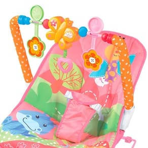 A Cadeira Baby com Móbile estimula o desenvolvimento da visão, audição e tato do bebê.