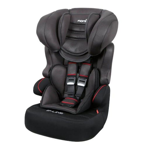 Cadeira infantil para auto, certificada para o Grupo 1/2/3 (de 9 kg a 36 kg), fabricada na França pelo maior produtor Europeu de dispositivos de retenção infantil. Possui travesseiro, ombreiras, almofada redutora de costas e assento, protetor entre-pernas, capa protetora da fivela. Cinto de segurança de 5 pontos, ajustador do cinto de segurança nos ombros, 3 posições de ajuste de altura do cinto de segurança. Encosto de cabeça ajustável em várias posições de altura. Possui uma posição de frente para o movimento. No grupo 1 (de 9kg a 18kg) deve ser fixada ao veículo com o cinto de segurança do veículo e a criança deve utilizar o cinto de segurança da própria cadeirinha. No Grupo 2 e 3 (de 15 a 36kg) deve ser utilizada sem os seus cintos de segurança e o cinto de segurança do veículo deve prender a criança e a cadeirinha ao mesmo tempo. Tecido auto extinguivel (não propaga o fogo). Nota: Apropriada se o veículo estiver equipado com cinto de segurança subabdominal, três pontos, estático, com retrator. Nunca deve ser instalada com um cinto abdominal de 2 pontos. Certificada pelo INMETRO.