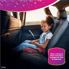 Seguranca, conforto e magia Disney em cada passeio. A Cadeirinha Booster Disney Princesas foi desenvolvida para acompanhar o crescimento das pequenas fas desse reino encantado, oferecendo uma viagem muito mais segura, confortavel e divertida.