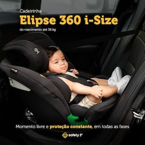 A Elipse 360 I-Size da Safety 1st oferece segurança, conforto e praticidade do nascimento até 12 anos. Com rotação de 360 e instalação simplificada por Isofix + Top Tether, facilita o dia a dia dos pais sem comprometer a proteção da criança. Indicada para crianças de 0 a 12 anos (40 a 150 cm), conta com proteção lateral SafeSide, encosto de cabeça ajustável, redutor acolchoado removível e múltiplos níveis de recline, garantindo conforto e segurança em todas as fases.