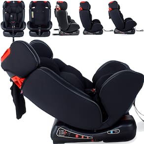 A cadeirinha para carro Prati Galzerano possui 4 posições de reclinação, apoio de cabeça com várias posições de altura, redutores de assento e de cabeça removíveis, protetores de ombros acolchoados removíveis e cinto de segurança de 5 pontos.