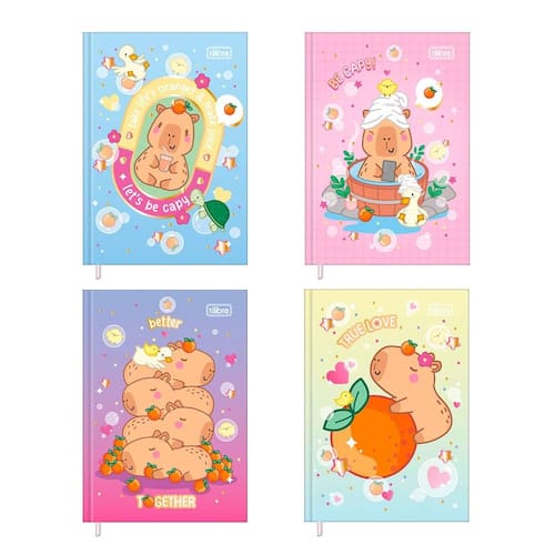 A Caderneta Brochura Capyclub da Tilibra combina praticidade, resistência e um visual encantador com os personagens carismáticos do universo Capyclub.