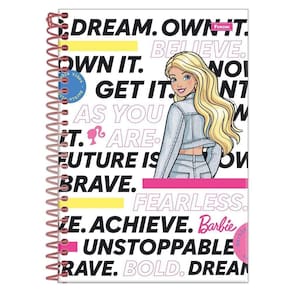 O caderno espiral 1/4 capa dura barbie expressa a tendência fashion, lifestyle e muita diversão. Busca retratar cores alegres e a própria personagem em todas as suas capas. Detalhes: adesivo especial formato: 140 x 202 gramatura: 56 g/m guarda decorada laminação fosca n de fls: 80 pauta básica verniz - espiral rosé gold atenção: imagem meramente ilustrativa. Pode ocorrer mudanças no tom da cor para o produto real ou mudanças na embalagem sem aviso prévio por parte do fornecedor/fabricante.