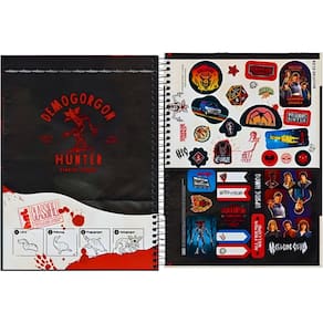 Capa dura com detalhes metalizados e parte interna decorada Bolsa de papel decorada Espiral colorido Folha de adesivos funcionais 16 matéria 256 folhas Formato: 200 mm x 275 mm Gramatura: 56 g/m² Perfeito para estudantes que desejam unir tecnologia, qualidade e um visual exclusivo inspirado no universo de Stranger Things.