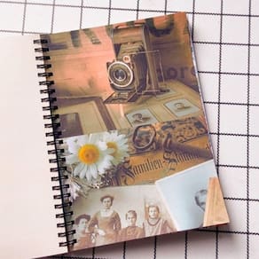Tamanho: A5 21cm x 14,8cm 60 folhas Capa dura Artesanal Material: Papel Adesivo 120g Elástico para fechamento Espiral Wire-O Marca: Não Informado