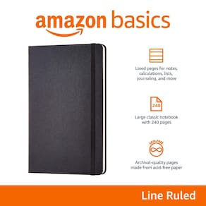 Caderno forrado Amazon Basics Classic, capa dura de 240 páginas, 5 x 8,25 polegadas, preto
