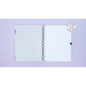 Caderno Arco-Íris G+ Linhas Brancas Cigdp4006 O caderno que você tira e coloca folhas quando quiser. Capa e contracapa rígidas 1 bolsa plástica 1 folha de instrução de uso e manuseio, com refis e acessórios da marca disponíveis no verso 1 folha de identificação com calendário no verso 4 divisórias com abas para identificação 02 pretas e 02 transparentes 140 folhas 90g 120folhas pautadas linhas brancas e 20 folhas lisas brancas para impressão Formato: Grande 280mm X 215mm Estampa: arco-íris