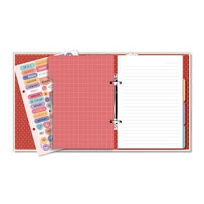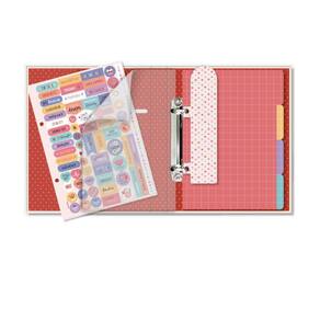 Caderno com ferragem 2 argolas, capa dura com 4 divisórias formato 14,5 cm x 20,5 cm em papel kraft resistente em cores superlindas, e o lado de trás tem espaço para você escrever ou desenhar o que quiser. Miolo no formato 13,5 cm x 20,5 cm com 80 folhas pautadas em papel offset 90 g/m2 . Acompanha cartela de adesivos, envelope resistente para documentos, capa protetora transparente e um marcador de páginas.