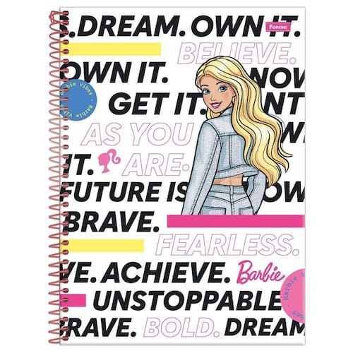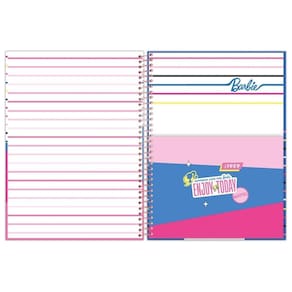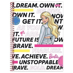 O design espiral e a capa dura garantem durabilidade e conforto, facilitando a escrita em qualquer superfície. Perfeito para uso escolar, o Caderno Barbie também é uma excelente opção de presente para meninas que amam a boneca.