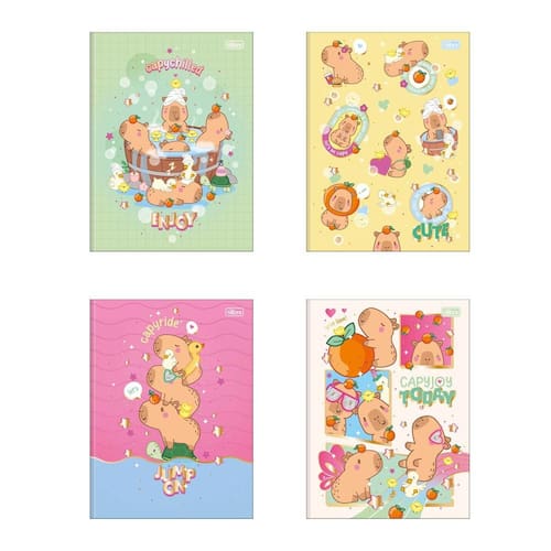 O Caderno Brochura Capa Dura Universitário Capyclub 80 Folhas da Tilibra é perfeito para você que busca uma opção para organização da rotina de estudos com visual com ilustrações divertidas de capivara.