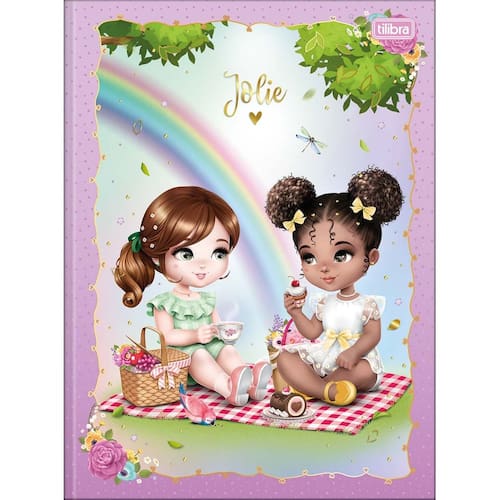 O Caderno Brochura Capa Dura Universitário Jolie 48 Folhas possui capa dura com detalhe metalizado, parte interna decorada, folha dupla de adesivos e folhas pautadas. Ideal para o dia a dia na escola.