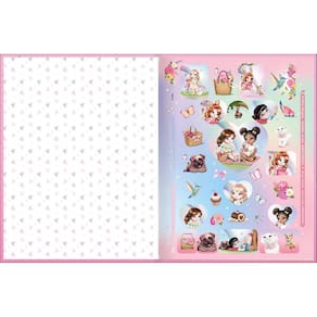 Capa: com detalhe metalizado e dura . Folha de adesivos: dupla . Folhas: pautadas . Miolo . Parte interna da capa decorada . Produto certificado: FSC . Formato: 200mm x 275mm . Gramatura: 56 g/m² . Número de folhas: 48 folhas.