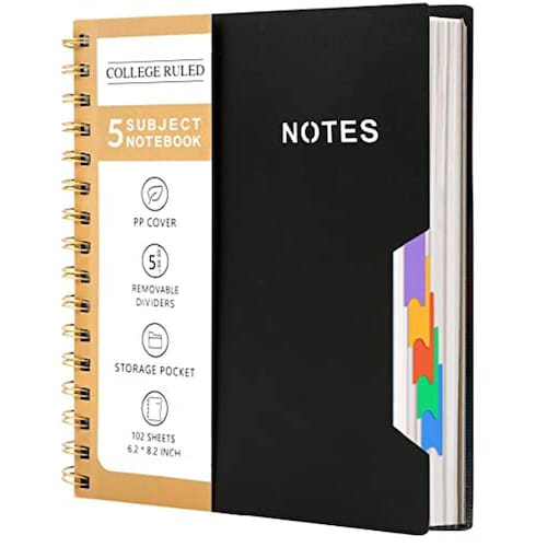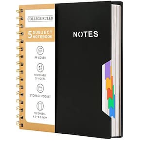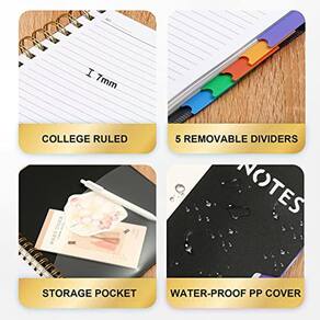 Caderno de 5 assuntos CAGIE, caderno universitário, capa dura, forrado em espiral, com 5 divisórias coloridas removíveis, cadernos de 204 páginas para trabalho, material escolar, casa e escritório, diário de redação
