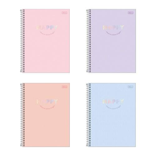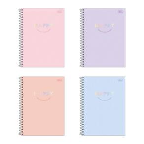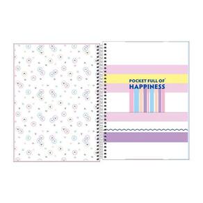 O Caderno Espiral Capa Dura Universitário Connect 10 Matérias Happy 160 Folhas da Tilibra é perfeito para você que busca uma opção para organização da rotina de estudos com visual em cores pastel.