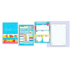 - folhas com listras. - adesivos. - 1 matéria. - papel 56g. - 80 folhas. - cor: colorido. - capa: dura. - folhas: com pauta. Dimensões do caderno: 17,9 cm x 24,1 cm. Formato: 179 mm x 241 mm. Composição: - papel.
