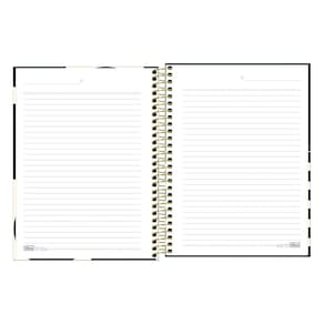 O caderno espiral capa dura colegial 10 matérias west village 160 folhas da tilibra é perfeito para você que busca uma opção para organização da rotina de estudos com visual moderno e sofisticado use este modelo, com capa dura com detalhes metalizados e parte interna decorada, espiral colorido, bolsa de papel decorada para guardar trabalhos, adesivos funcionais, folhas pautadas, decoradas e destacáveis, para anotar as aulas, fazer resumos, listar tarefas e organizar as ideias de forma prática e eficiente. Detalhes: capa dura com detalhe metalizado espiral dourado folha de adesivos folhas pautadas e índice/separador de matérias decorados formato: 177mm x 240mm colegial gramatura: 56 g/m número de folhas: 160 folhas atenção: imagem meramente ilustrativa. Pode ocorrer mudanças no tom da cor da tela do celular/pc para o produto real ou mudanças na embalagem do produto sem aviso prévio por parte do fabricante. Marca: Não Informado