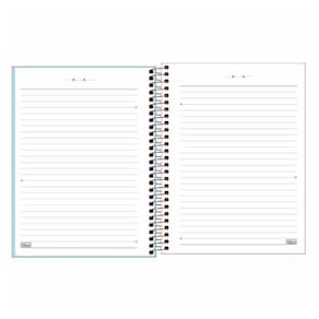 - Caderno espiral com 160 folhas - Capa plástica com detalhes metalizados - Cor da capa: azul - Miolo pautado - Bolsa de papel decorada - Folha de adesivos - Formato: 17,7x24 cm Ean: 7891027307035