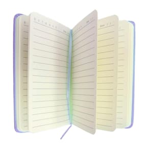 Bloco de anotações lyke na cor roxo, com páginas pautadas. Com marcador de páginas. Possui uma capa resistente e macia com cantos arredondados e é ideal para anotações rápidas. Capa de papelão rígido com acabamento emborrachado, folhas pautadas e fechamento em elástico. Cor: roxo medidas: 9x14cm com 96 páginas atenção: imagem meramente ilustrativa. Pode ocorrer mudanças no tom da cor para o produto real ou mudanças na embalagem sem aviso prévio por parte do fornecedor/fabricante. Marca: Não Informado