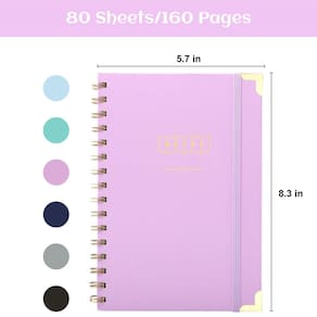 Caderno espiral de capa dura, diário de caderno universitário, caderno espiral pequeno A5, 5x7, 160 páginas, cadernos espirais para trabalho, caderno de anotações estéticas para mulheres e homens, material escolar, roxo