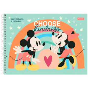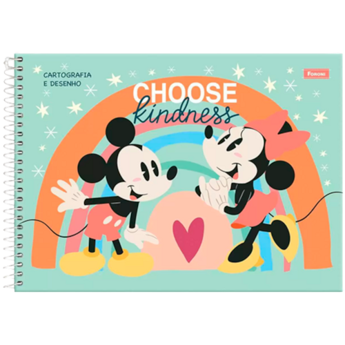 O Caderno de Cartografia Espiral Capa Dura Mickey Mouse possui 80 Folhas sem pautas e encarte para colorir.