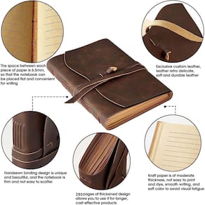 Apresentamos o caderno RILIHO Leather Journal, um diário lindamente feito à mão feito de couro autêntico. Este caderno possui uma encadernação costurada à mão, garantindo durabilidade e uma estética única, tornando-o perfeito para uma variedade de usos, como um livro de contas, diário de viagem, livro de registro familiar, agenda de compromissos, diário diário, livro de pintura, caderno de esboços ou livro de registro de trabalho. Também vem em uma embalagem de caixa de presente, o que o torna um presente ideal para ocasiões especiais. Garantimos a qualidade do nosso produto e oferecemos uma garantia de satisfação. - Genuine Leather Design: The leather is soft, smooth and durable; hand-stitched; making it unique and beautiful overall; daily journal for women and men - Handmade Customized: Each journal is crafted by artisans who have been working with leather for decades; ensuring that the notebook is firm and not easily scattered; perfect diary for women and men - Vintage Kraft Paper: The notebook's inner A5 paper adopts a vintage-style kraft paper; lined journal complementing the notebook cover; it provides a moderate thickness; and the writing experience is smooth without easy printing or dyeing - Giftable and Multi-purpose: Perfect as New Year gift; these leather journals can be used as a hand account book; travel journal; diary; record book; notepad; poetry journal; bible journal; appointment planner; painting book; sketchbook; - Quality Assurance: We stand by the quality of our product. If you are not satisfied; please contact us within one year; and we will promptly address the issue to ensure your complete satisfaction