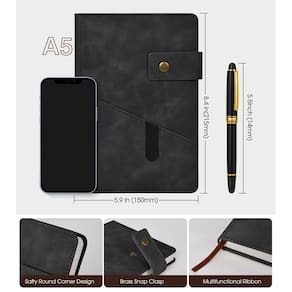 100% novo e de alta qualidade Características: Mantenha suas experiências únicas registradas com papel forte e de alta qualidade. Design conveniente de inserção de caneta, aplicação conveniente. Fita de seda com marcadores para facilitar a referência. Pode gravar seu diário, diário de viagem e anotações. Impressão clara, sensação de toque suave e confortável, fazendo você escrever suavemente e bem. É um ótimo caderno para você planejar o dia a dia, organizando suas coisas. Ótimo para projetos, listas de anotações, anotações e uso diário em casa, escritório ou escola. Grave seus valiosos pensamentos, memórias e experiências neste caderno clássico. É bom para estudantes, empresários, professores, professores e assim por diante. Especificações do diário: Material: 100 g de papel dowling, couro sintético Tamanho: 215 x 150 mm. Cor opcional: cinza, vermelho, marrom, azul, preto, roxo, verde, azul escuro, rosa, azul claro Folha de papel: 100 folhas e 200 páginas Conteúdo da embalagem: 1 caderno de diário + 1 caneta de metal de luxo Observação: Considere uma diferença de 0 a 1 cm devido à medição manual. Certifique-se de que não se importa com isso antes de comprar. Devido à diferença entre diferentes monitores, a imagem pode não refletir a cor real do item. Obrigado! - ?Conjunto de diário de capa dura com relação ao custo-benefício?: Caderno clássico pautado cinza, os diários são livros elegantes e artesanais de qualidade disponíveis a um preço e qualidade surpreendentemente competitivos. Uma grande escolha para uso diário, oferece muito espaço para anotações, listas, reflexões e muito mais. E cada caderno oferecerá uma caneta de luxo, esta é uma das nossas melhores canetas de presente. - ?Papel grosso premium?: caderno de diário de 5,9 x 21,3 cm com papel pautado de 200 páginas, 100 g/m², mais espesso do que o normal, este caderno preto é projetado para evitar difusões e o papel é à prova de tinta, adequado para a maioria das canetas, mas para as tintas de caneta mais úmidas. Páginas de qualidade de arquivo feitas de papel sem ácido - resiste a danos da luz e do ar, o papel creme é agradável aos olhos. Deixe sua criação mais liberdade no amplo diário pautado para escrever. - Caderno de diário de couro sintético macio: este caderno elegante tem capa dura de camurça, mas é macio na mão, assim como a pele de um bebê. A capa moderna mas confiável se adapta aos movimentos do corpo sem danos. A capa dura do caderno protege as páginas internas e funciona como uma superfície de escrita conveniente. Ótimo presente para qualquer pessoa. - ?Design reforçado?: design de bolso reforçado e capa de papelão, a fivela de metal ajuda a manter o caderno fechado com segurança, facilitando a escrita no caderno de praticamente qualquer lugar. Este caderno oferece a você uma experiência de escrita de alta qualidade. Bolso reforçado expansível para guardar notas soltas, cartões de visita, recibos, celular ou outros itens pequenos. - ?Ótimo uso e presentes de diário perfeitos?: ideal para todo o escritório, escola e uso doméstico, incluindo para fazer anotações e manter o trabalho em ordem, como um diário ou diário para ideias de brainstorming, escrita criativa ou apenas rabiscar e desenhar para o seu coração. Este caderno de diário personalizado é um ótimo presente de aniversário, dia das mães, dia dos pais, dia das crianças, formatura, diário de Natal. É um presente ideal para mãe, pai, professores, esposa, marido, amigos, filhas, filhos e neta.