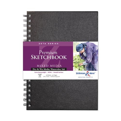 Stillman & Birn Caderno de esboço da série Zeta, 17,8 cm x 25,4 cm, 270 gsm (peso extrapesado), papel branco, superfície lisa