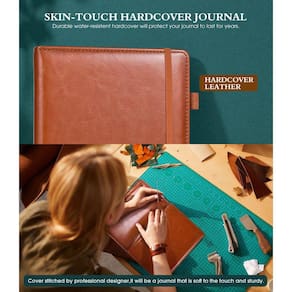 ?Atualize Hardcover Leather Journal?A capa é costurada por um designer profissional e contém uma esponja interna, tornando a superfície macia e remontável, enquanto o caderno de capa dura protege o interior das páginas melhor do que uma capa macia e fornece uma superfície de escrita confortável. A costura especial torna o notebook retrô e elegante