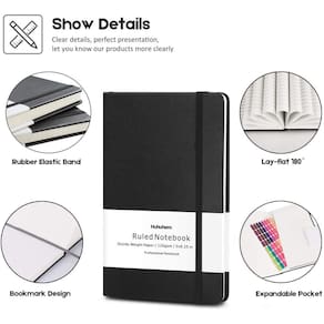 Cadernos de 120 g/m² para escrever - Cadernos forrados com capa dura: com capa dura de couro sintético resistente premium, que torna os cadernos pautados resistentes e confortáveis ao toque. A capa dura ajudará a proteger as páginas internas e fornecerá uma superfície de escrita suave. 180° defina para escrita e leitura confortáveis sem dificuldade. - Papel grosso premium 120GSM: 64 folhas/128 páginas grossas pautadas para fornecer espaço suficiente para escrever. Feito com papel sem ácido de 120 g/m² em cor creme, que é 35% mais espesso do que o normal. Você pode usar com confiança a maioria das canetas, lápis ou alguns marcadores sem fantasmas e vazamentos, exceto marcadores à base de álcool. - Fácil de transportar: o tamanho deste caderno é de 13,3 cm x 21 cm, a largura do forro é de 0,6 cm. Este bloco de notas compacto é perfeito para negócios, escritório, trabalho, casa, faculdade, estudantes, homens, mulheres, cientistas e pessoas em outras áreas. Tamanho compacto para carregar ou colocar em sua bolsa ou bolsa. - Design humanizado: 1 bolso expansível, 1 faixa elástica elosure e 1 marcador de página de fita. O elástico é forte e o marcador de página é útil. Um bolso na parte de trás para guardar cartões de visita, notas, recibos e outros pequenos itens de papel. O papel é bem costurado, então você não precisa se preocupar com a capa traseira ou o papel saindo. - Amplamente utilizado: o caderno Huhuhero proporcionará uma experiência de escrita perfeita. Nossos cadernos são perfeitos para escrever diários, anotações, planejamento diário, trabalho ou desenho, etc. Essenciais universitários premium, material de escritório e material escolar. Ótimo presente para estudantes universitários, crianças, amigos ou colegas de trabalho.