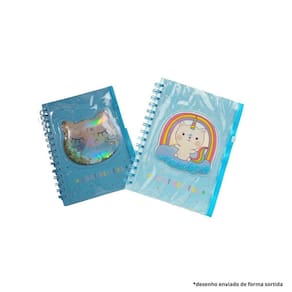Caderno Diário Azul Unicórnio / Gatinho Com Bolsinha Fofo
